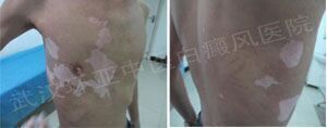 这个患者叫陈xx,读书识字不多,没有多少文化,当知道自己得了白癜风之后首先想到的就是吃药。在当地离家不远的小诊在没有检查的情况下,直接让医生开了一些治疗白癜风的药,一直没有去正规的大医院检查。服药3个月后,开始出现呕吐迹象,而且患处出现痒的症状,白斑颜色开始变得比之前还白,一般这个时候我们都会想到药物医院进行检查了,但是图中的患者依然没有去医院,还是坚持吃药,导致最后的白斑逐渐变大。