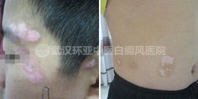 患者的白斑最初长在脸上,刚开始也没有特别的在意,但是白斑越变越大,这引起了孩子父母的重视。曾经在当地的医院治疗过,但未见效果,后又发现孩子的腹部也出现了新的白斑,直到2015年10月份,听说武汉环亚中医白癜风医院治疗白癜风效果好,才慕名前来。>>>孩子身上有白斑直接点击咨询预约