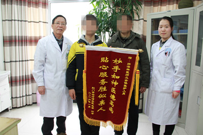 为表达感谢,赵佳佳父子为我院专家帅海林送上一面锦旗。